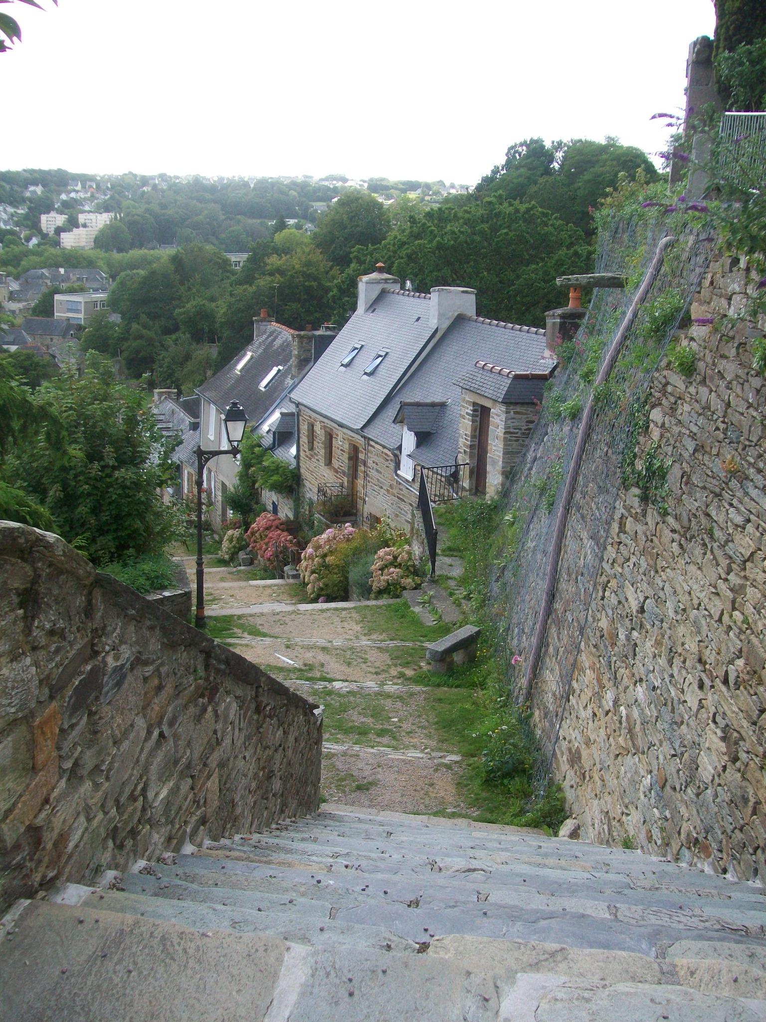 Yesterday, I went round the corner (literally) to the famous steps of this town, Les Escaliers de Brelevenez and took some photos. It was very pretty up there, but the thing that made me smile was when I saw a group of teenagers being made to run up the hills surrounding the church and steps. Good ol' PE, glad I don't have to do that anymore. It also made me wonder if I'd be teaching any of them. For those of you who are friends with me on Facebook, you can see the pictures there, if not, you'll just have to put up with the one in this post.